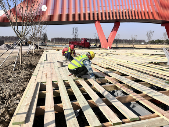 虾谷观景台下,木质栈道沿田蜿蜒,施工人员正细致铺设木板、检查牢固度。“这条栈道既是观景台,更是‘农文旅+虾稻’融合的缩影。”管理区相关负责人介绍,围绕小龙虾主题,这里正打造集生态钓台、休闲栈道、田园科普于一体的体验空间,让“稻花香里说丰年”成为可游可感的实景。