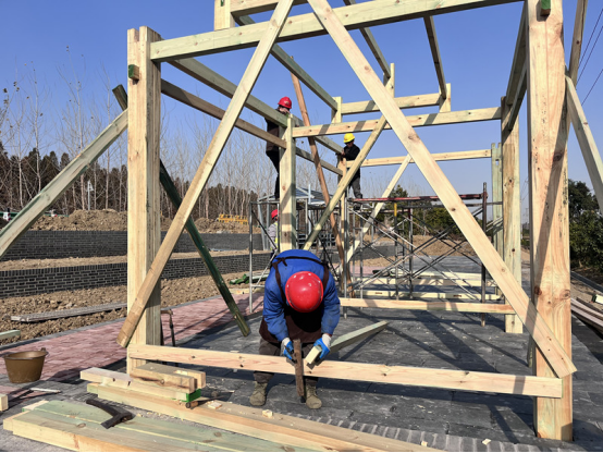 “立足区位优势,我们以农旅并进为思路,推动农业、加工、物流、旅游等串联成片。”项目负责人戴宜武指着图纸介绍,社区正在建设两个配套景墙、休闲铺装与生态绿化的小游园,建成后将补齐服务短板,提升乡村功能。