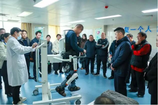 随后,大家实地参观了康复医学科各功能区域,亲身体验了康复机器人、体质检测等项目,深入了解了“潜心康复”从精准评估、专业治疗到健康管理的全流程服务体系。