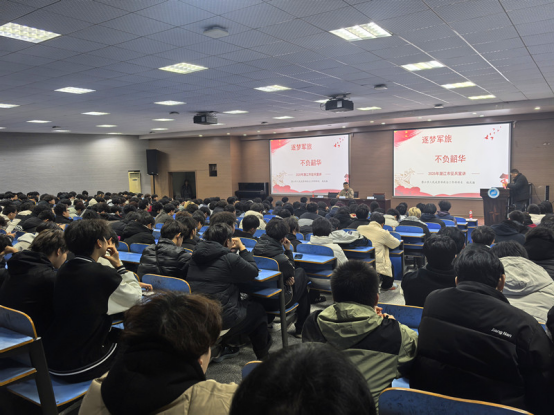 在应征入伍动员大会上,市征兵办相关负责人结合学校实际制定宣讲内容。宣讲重点解读了征集条件、体检标准、报名流程等基础政策,并针对学子关切的核心权益展开详细说明,包括大专生入伍学费补偿代偿、部队内报考军校提升学历、退役后专升本专项计划等关键政策。针对“实习与入伍时间冲突如何协调”等具体疑问,相关负责人结合同类院校学子参军的真实案例现场解答。