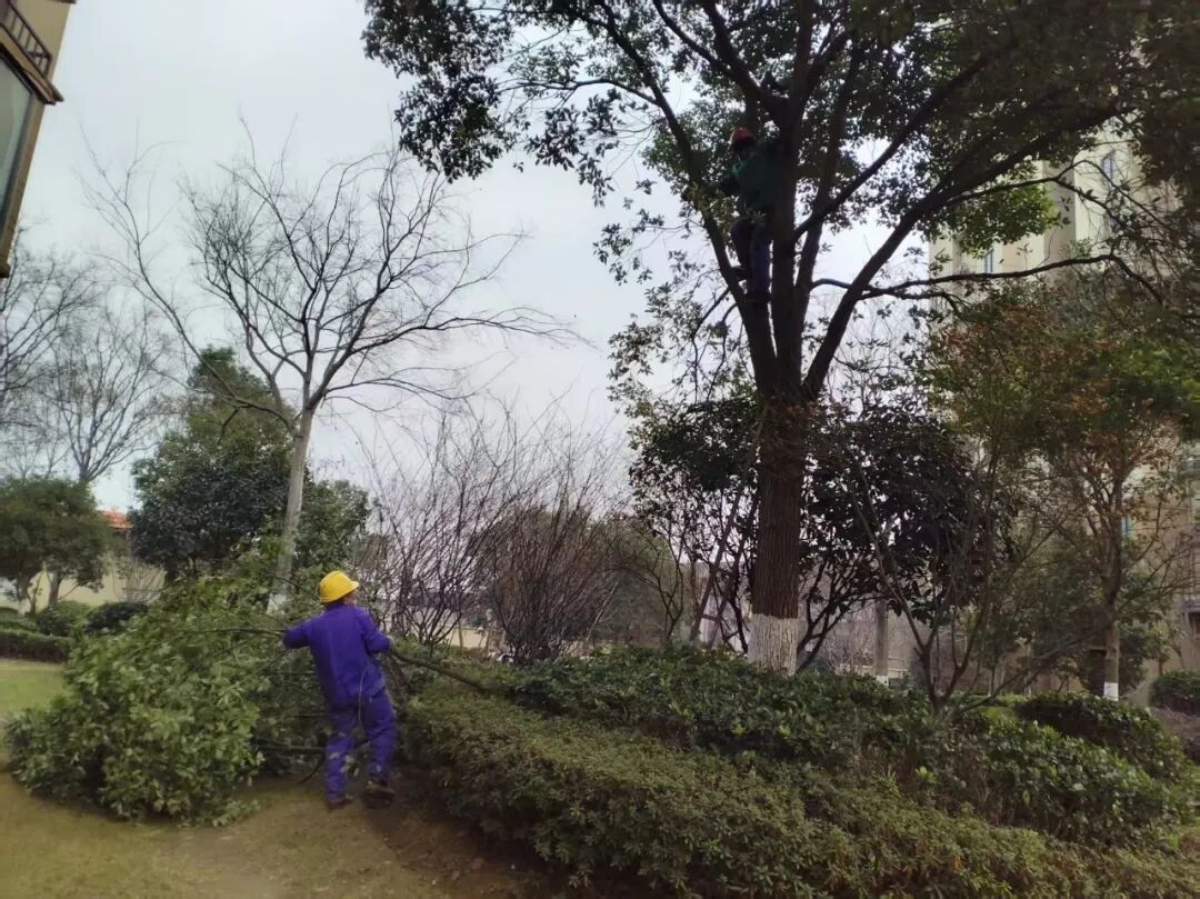 为进一步提升小区绿化景观效果,解决部分高大树木遮挡低层住户采光及潜在的安全风险,社区坚持问题导向,联合物业、下沉服务队对小区树木生长情况开展拉网式排查。在充分征求居民意见的基础上,科学制定修剪方案,明确施工标准与安全规范。施工过程中,专业队伍严格按图作业,对过高过密树木进行科学截干、合理疏枝,既确保了低层住户的通风采光,又有效防范了极端天气下树枝折断伤人的风险。修剪完毕后,物业迅速组织力量对现场枝叶进行清理清运,做到工完场清、路面整洁,实现了人居环境的“提颜增质”。