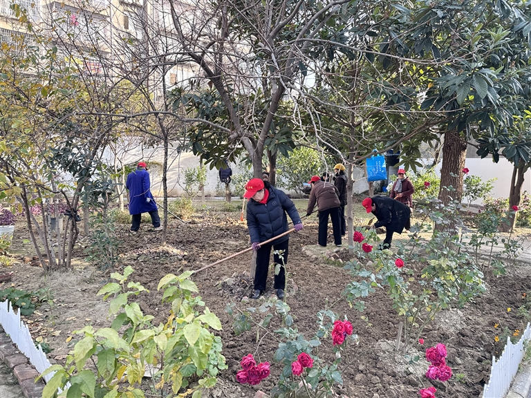 徐角小区,居民与社区工作人员携手清理荒废地块,开展环境增绿改造。(潜江市融媒体中心记者 周莹 通讯员 谢诗琴 摄)