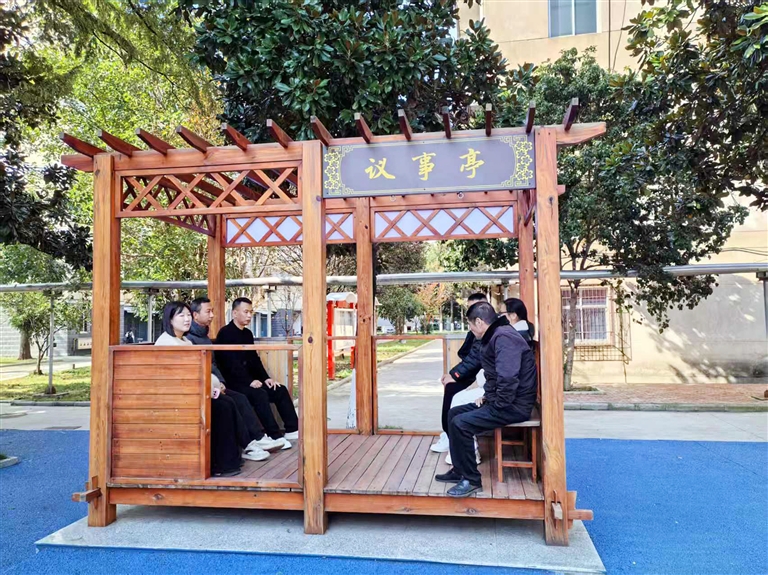 徐角小区议事亭:居民与社区干部面对面,共商治理,共建和谐。(潜江市融媒体中心记者 周莹 通讯员 谢诗琴 摄)