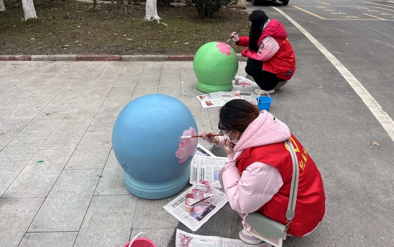 潜江新闻网讯(潜江市融媒体中心记者 王宇杰 通讯员 汪芷茜 摄)近日,广华寺街道世纪苑社区通过党建引领“微改造”,将活动室门前单调的石墩变为一道亮丽风景。社区邀请书画爱好者与大学生志愿者执笔,以银杏、梅花、翠竹等元素在石墩上进行彩绘。深浅交织的色彩让原本冰冷的石墩承载起美好寓意,不仅美化了环境,更在居民巧手下增添了浓浓的烟火气与幸福感。