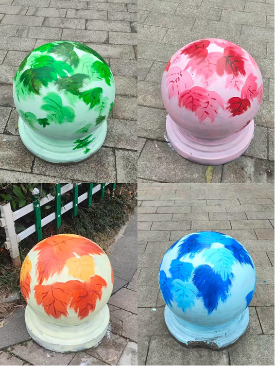 “这组‘春夏秋冬’寓意四季平安,过年看着特别喜庆!”带着孙女驻足的居民李大爷掏出手机拍照。盛世龙城以四季主题搭配“彩蝶画语”景观,传递坚韧向善的生活哲思;都市华府在天使风车长廊增绘藤蔓与跳房子图案,孩子们在彩绘间嬉戏,欢声笑语提前点燃新春氛围;教师新村的“花鸟鱼木”栩栩如生,人与自然和谐共生的愿景跃然“墩”上。