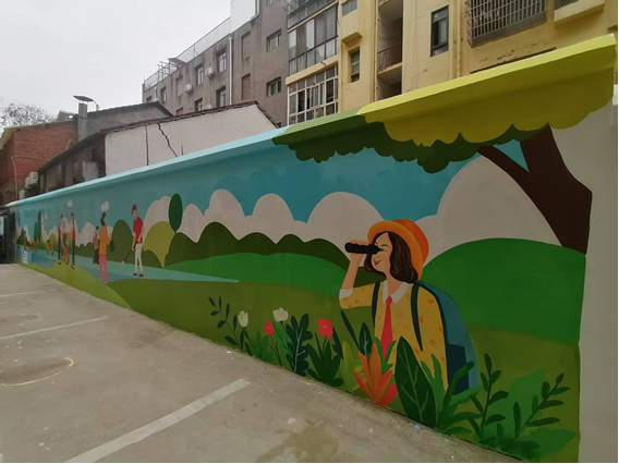 憨态可掬的卡通动物,清新雅致的花草纹样,还有邻里互助、文明养犬的主题彩绘……一幅幅作品贴合居民喜好,悄然爬上墙面。“以前这面墙破旧单调,现在画上这么好看的图案,年味儿一下子就浓了!”居民刘高红的喜悦之情溢于言表。