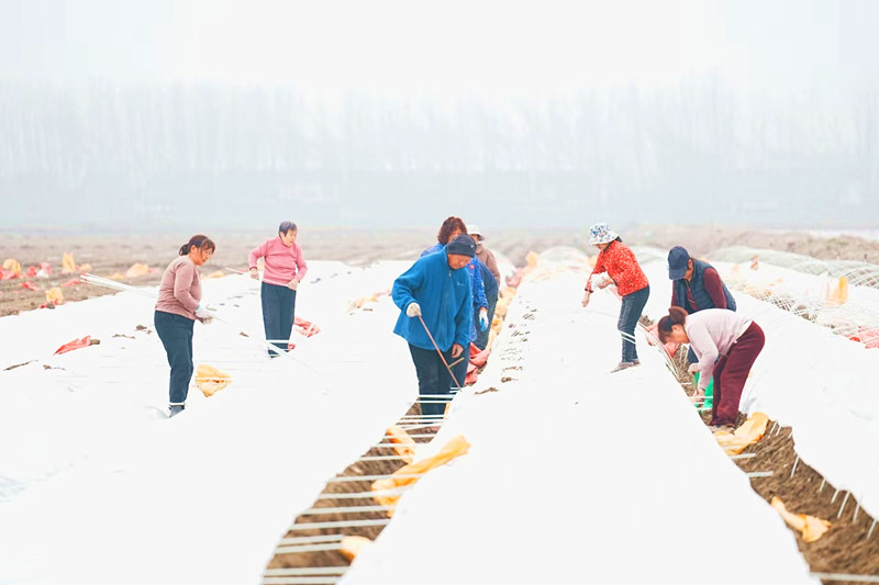 潜江新闻网讯(潜江市融媒体中心记者 杨靖 通讯员 朱怡丹)初春晨光洒在高石碑镇田野,蚌湖秋月生态农业有限公司50亩蔬菜基地内一派繁忙景象。公司负责人唐进豪正与工人们一道,将钢条弯成弧状插入土中、覆上薄膜,一排排银白色小拱棚如波浪般延展,在朝阳下熠熠生辉。这些“微温室”,是唐进豪依托镇政府帮扶、外出取经后,专为早春小土豆打造的生长家园。