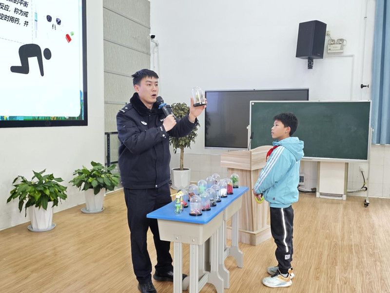 潜江新闻网讯(潜江市融媒体中心记者 王宇杰 通讯员 吴佳丽 杨苗)3月6日,江汉油田外国语学校开展“珍爱生命 远离毒品”禁毒宣讲活动,特邀广华片区戒毒所警官与广华街道社区义工走进校园,为五年级全体学生授课。活动紧扣家校社协同育人要求,讲解毒品危害与防范知识,有效提升了学生识毒、防毒、拒毒的意识,通过多方联动筑牢安全防线,为青少年健康成长保驾护航。