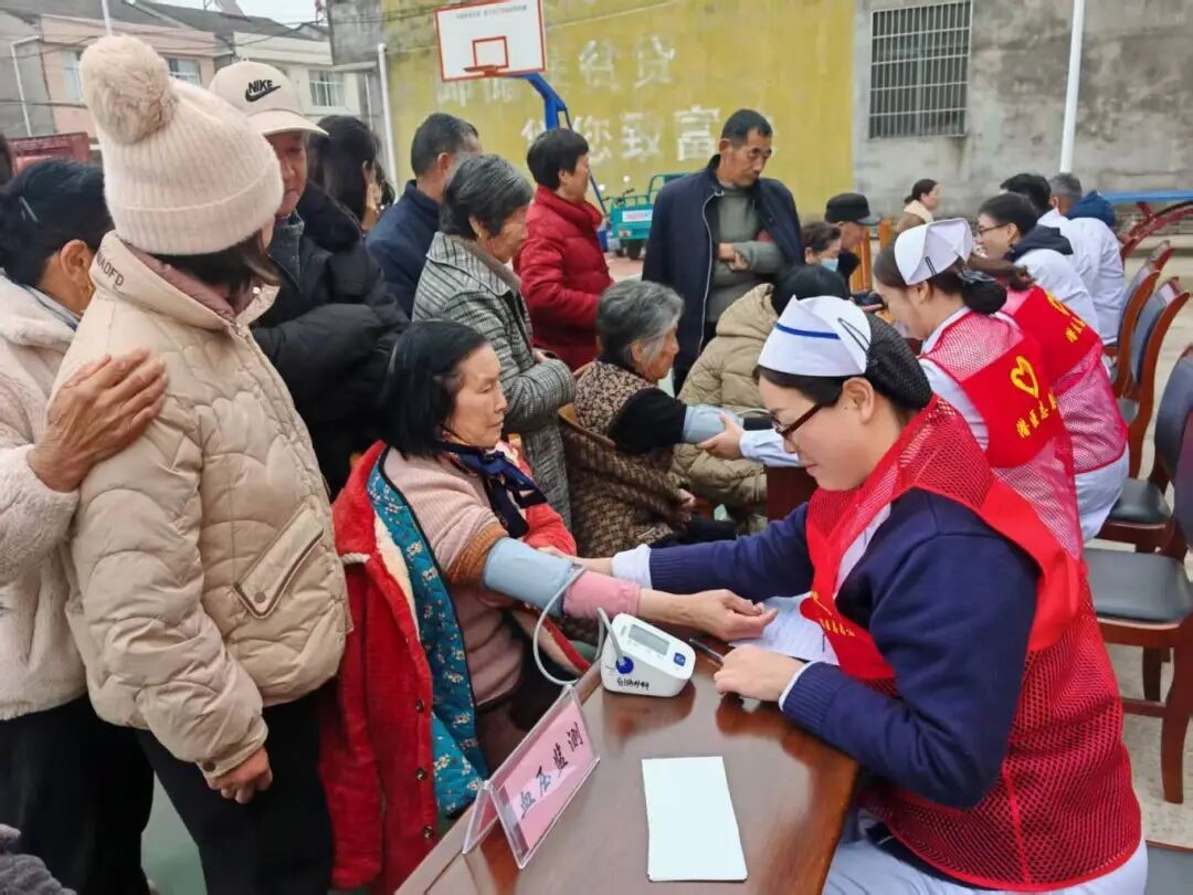 3月4日上午,潜江市中心医院本禹志愿服务队组建专项医疗团队,携带专业医疗设备,早早奔赴杨市街道代滩村,为当地村民提供免费健康义诊服务,把优质医疗资源送到群众“家门口”。