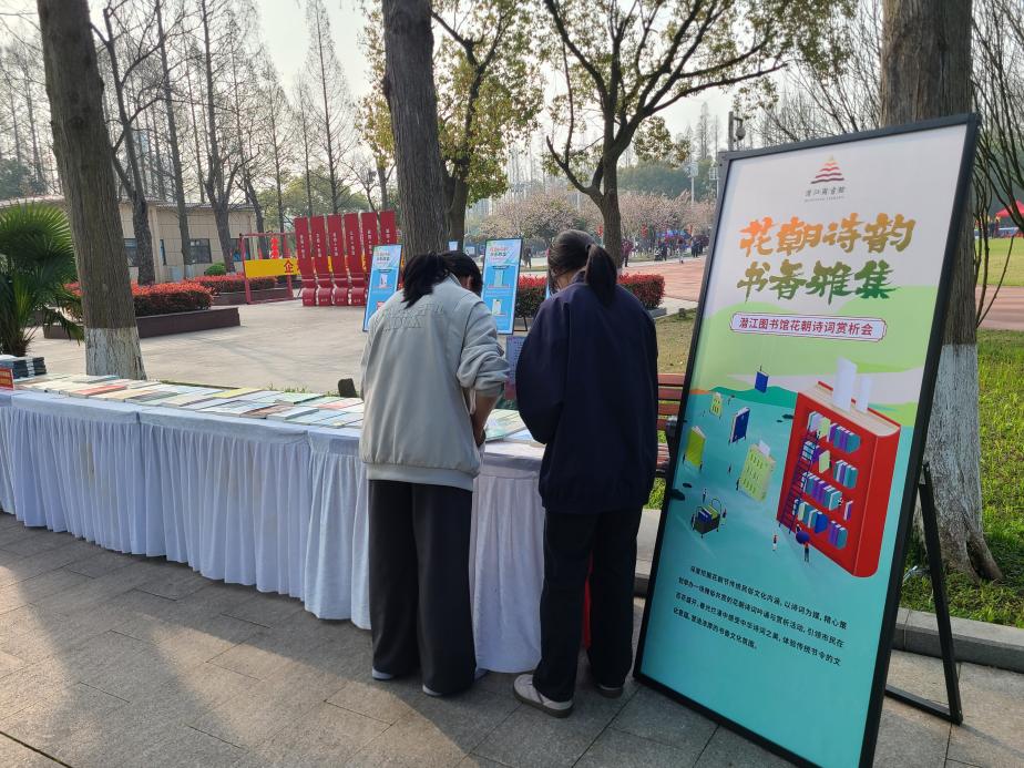 潜江新闻网讯(潜江市融媒体中心记者 王宇杰 通讯员 冯志鹏)为深入挖掘传统民俗文化内涵,让市民在春日美景中感受中华诗词的独特魅力,3月28日,市图书馆在广华水杉公园举办“花朝诗韵·书香雅集——花朝诗词赏析会”,以诗为媒、以春为契,将文化赏析与互动体验巧妙融合,为市民呈现一场别开生面的春日文化盛宴。