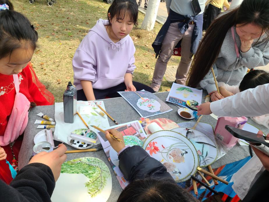 在手作体验环节,市民们在创作中感受传统美学。现场备有空白团扇、书签等材料,大家提笔书写心仪诗词,绘制春日花卉,制作专属花朝手作。团扇轻摇藏诗意,书签方寸蕴春光,一笔一画间,诗词之美与手工之趣相融,市民在动手创作中解锁传统节令的别样体验,定格春日美好时光。