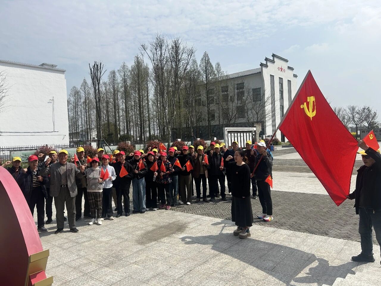 “我志愿加入中国共产党……”在拖船埠红色教育基地,面对鲜红党旗,40余名党员重温入党誓词。