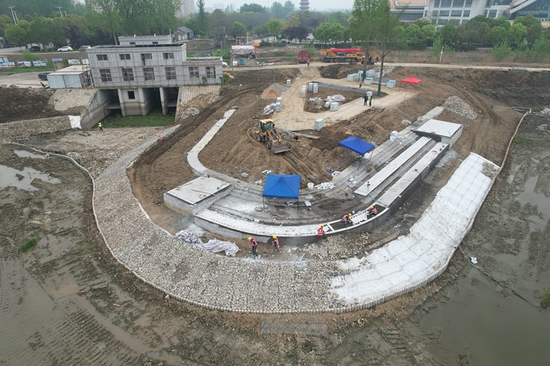 潜江新闻网讯(潜江市融媒体中心记者 薛晓军)4月8日,市城发集团负责实施的马昌湖生态修复项目建设现场,工人们正抓紧推进亲水平台施工。该项目总投资2亿元,重点建设环湖步道、水上汀步、清淤工程、泵站改造、游客码头等。目前,清淤、园路硬化、观景平台、泵站改造等工程正加快推进,已完成总工程量的80%。