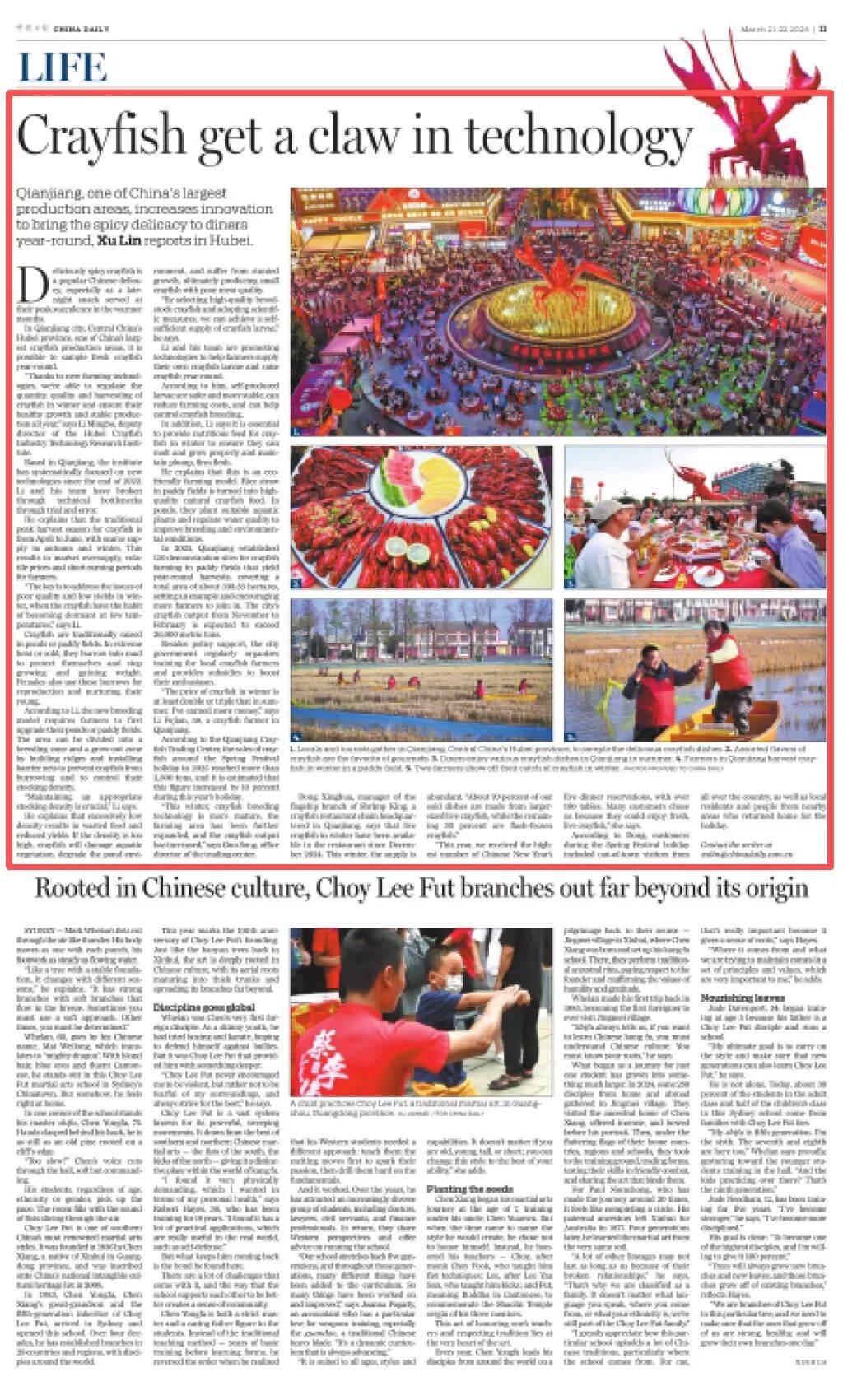 "Thanks to new farming technologies, we're able to regulate the quantity, quality and harvesting of crayfish in winter and ensure their healthy growth and stable production all year," says Li Mingbo, deputy director of the Hubei Crayfish Industry Technology Research Institute.