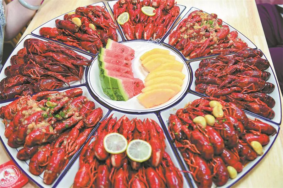 多种口味的小龙虾深受美食爱好者喜爱。