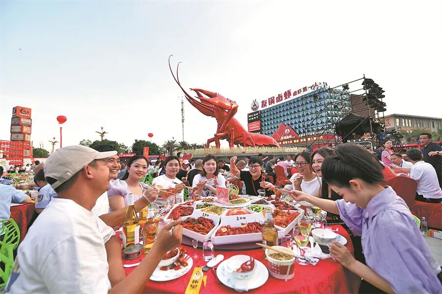 Locals and tourists gather in Qianjiang, Central China's Hubei province, to sample the delicious crayfish dishes.
