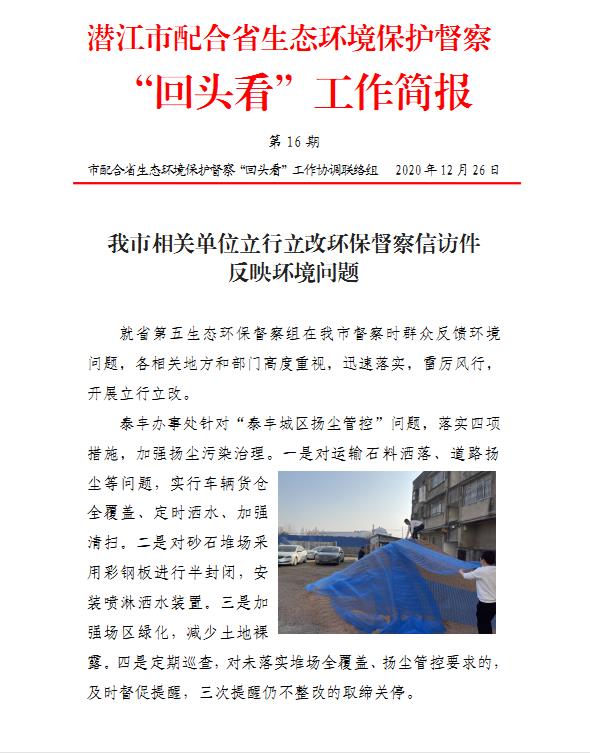潜江市配合省生态环境保护督察 “回头看”工作简报(第16期)
