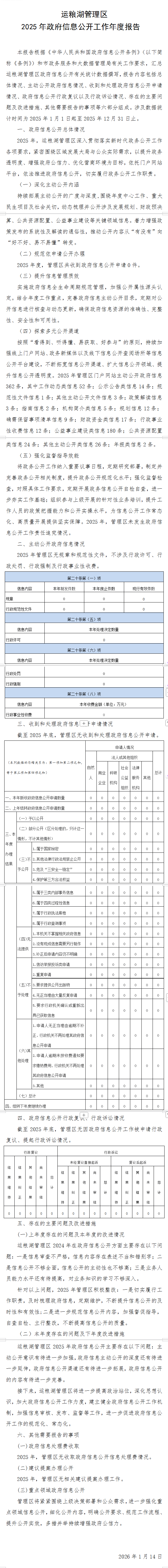 运粮湖管理区2025年政府信息公开工作年度报告