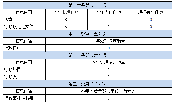 按照《国务院办公厅关于印发〈政府信息公开信息处理费管理办法〉的通知》(国办函〔2020〕109号)规定的按件、按量收费标准,本年度没有产生信息公开处理费。
