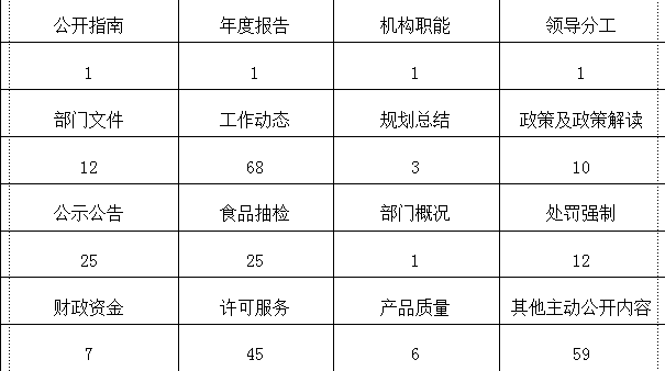 安排部署:2021年,潜江市市场监督管理局在市委市政府的正确领导下,严格按照《中华人民共和国政府信息公开条例》要求开展政府信息公开工作,全年共公开政府信息584条。公开范围包括公开指南、年度报告、机构职能、领导分工、部门文件、政务工作动态、规划总结、政策及解读、公示公告、食品抽检、重点领域信息等。