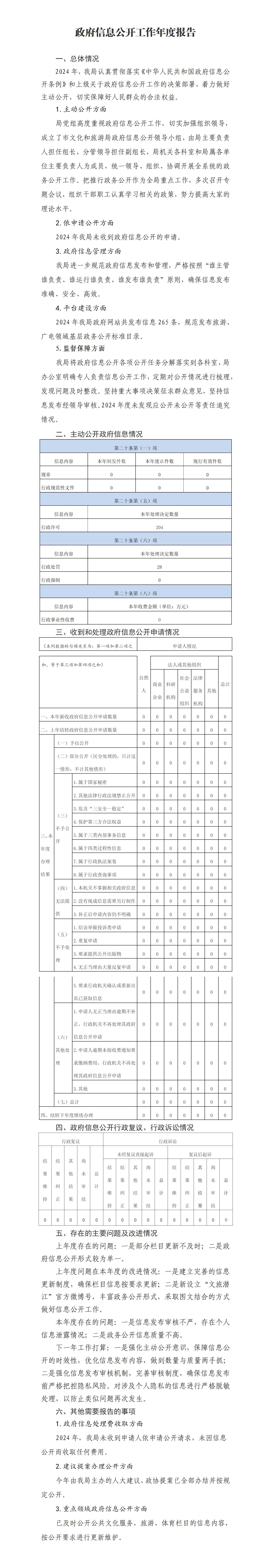 潜江市文化和旅游局2024年政府信息公开工作年度报告
