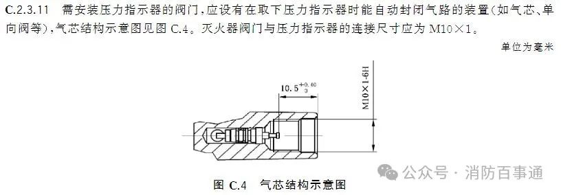 新标准对灭火器的阀门结构有新要求,在装有压力表的阀门上,厂家需要设计能取下压力表后灭火器不漏气的气芯结构。