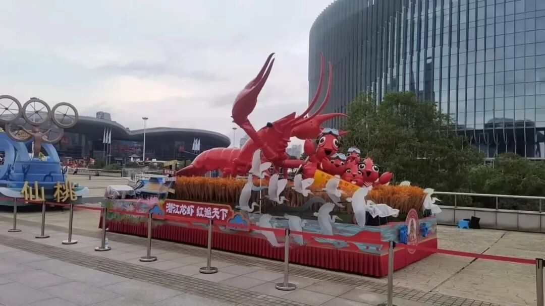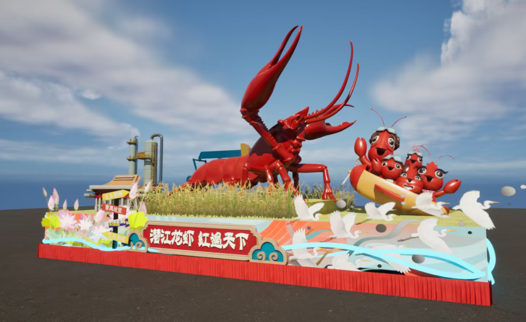 其中有潜江元素的“潜江龙虾”花车