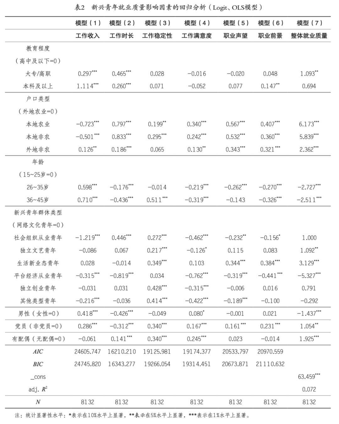 关键词:新兴青年;就业质量;双重维度;内部分化;影响因素