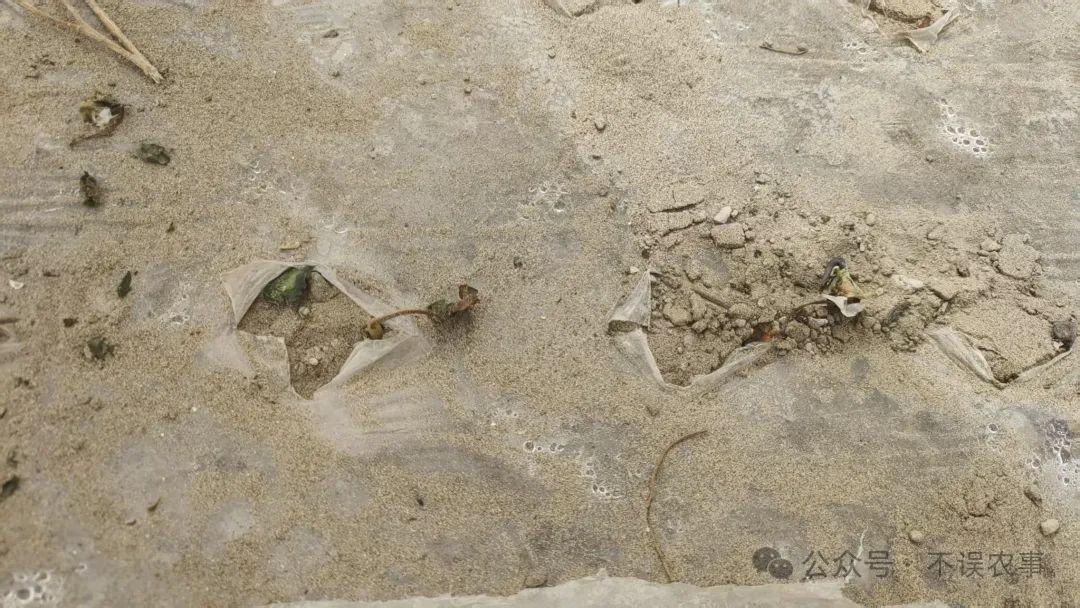 (1)封压地膜。尽快将地膜、滴灌带复位,隔段用土压住地膜,膜上破损孔洞用土封好防止跑墒。