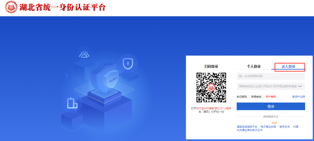 1.电脑打开湖北政务服务网,点击“法人登录”。