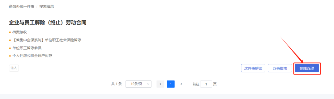 3.在搜索栏搜索:企业与员工解除(终止)劳动合同“一件事”。