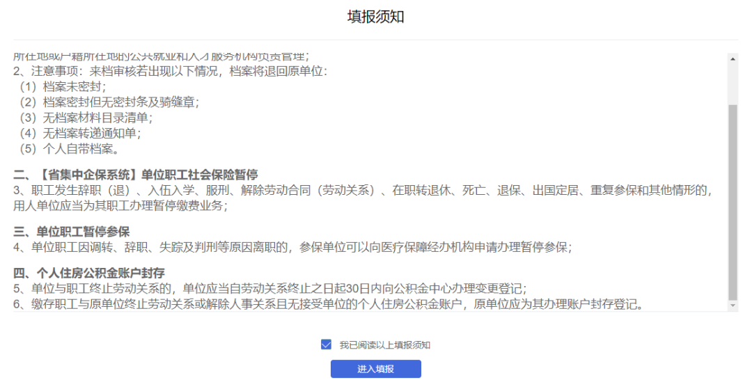 6.认真阅读填报须知,阅读完成后勾选确认并点击“进入填报”。