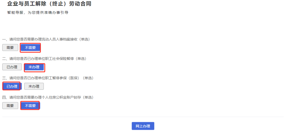 7.办理人员根据自身实际情况,智能引导选择完成对应情形选项。