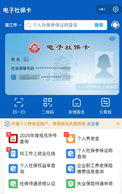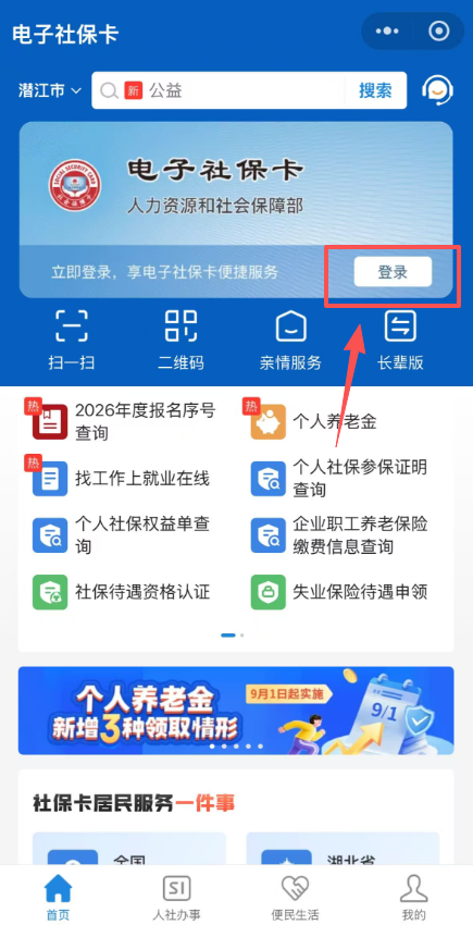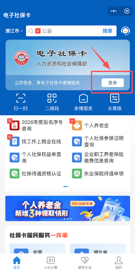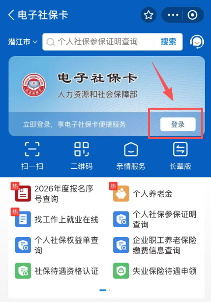 1.通过微信或支付宝进入电子社保卡小程序→点击登录→输入电子社保卡密码→点击验证并进入本人电子社保卡首页