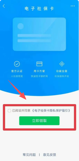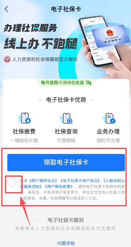 2、点击登录→左下角勾选同意授权后点击领取电子社保卡