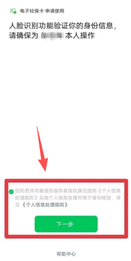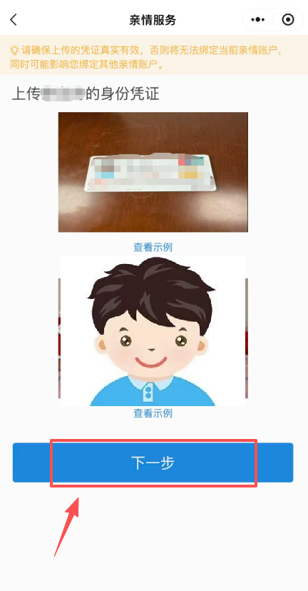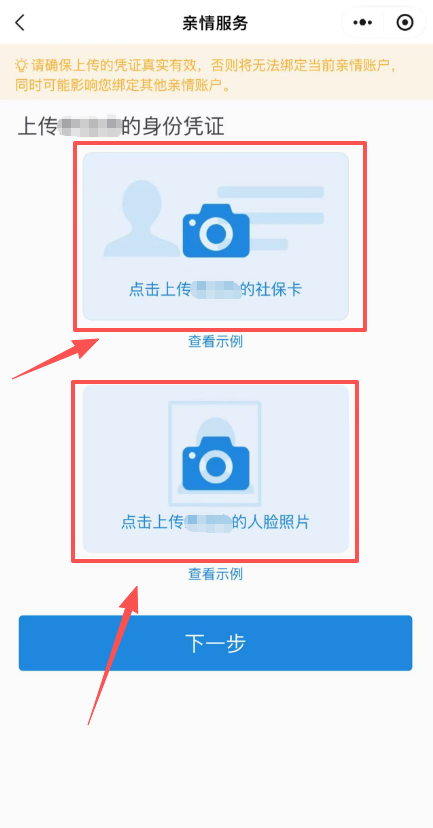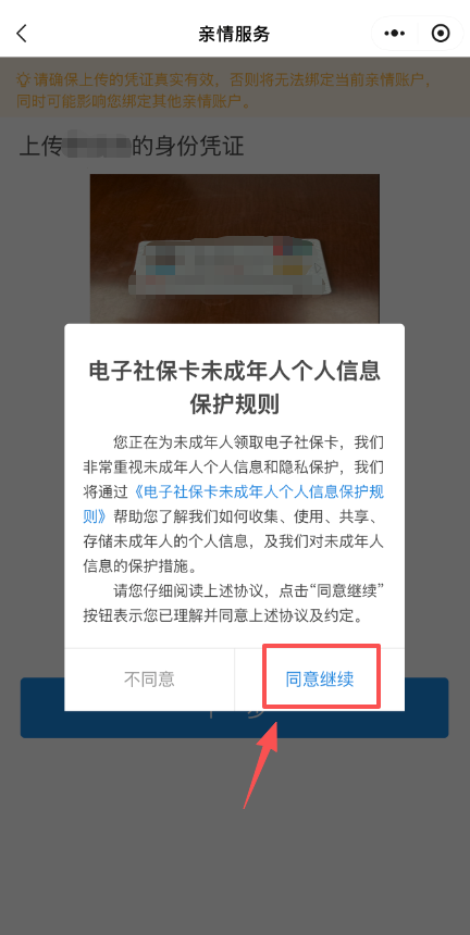 5、照片上传完成后点击下一步→同意继续→电子社保卡亲情账户绑定完成