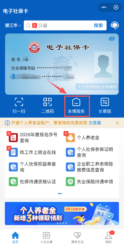 个人持有实体社保卡后,通过微信、支付宝等平台查询“电子社保卡”,一分钟即可完成申领。也可以通过本人电子社保卡的亲情服务添加父母、配偶、子女和近亲,帮助其申领电子社保卡(最多可绑定10名亲情账户)。具体申领流程如下: