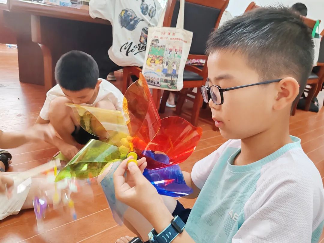 在工作人员的协助下,孩子们将画好的叶片固定到轴心上,再插上轻巧的手柄。“我的风车转得像彩虹!”“快看!我的小蝴蝶在飞!”孩子们举着风车欢呼着跑跳。