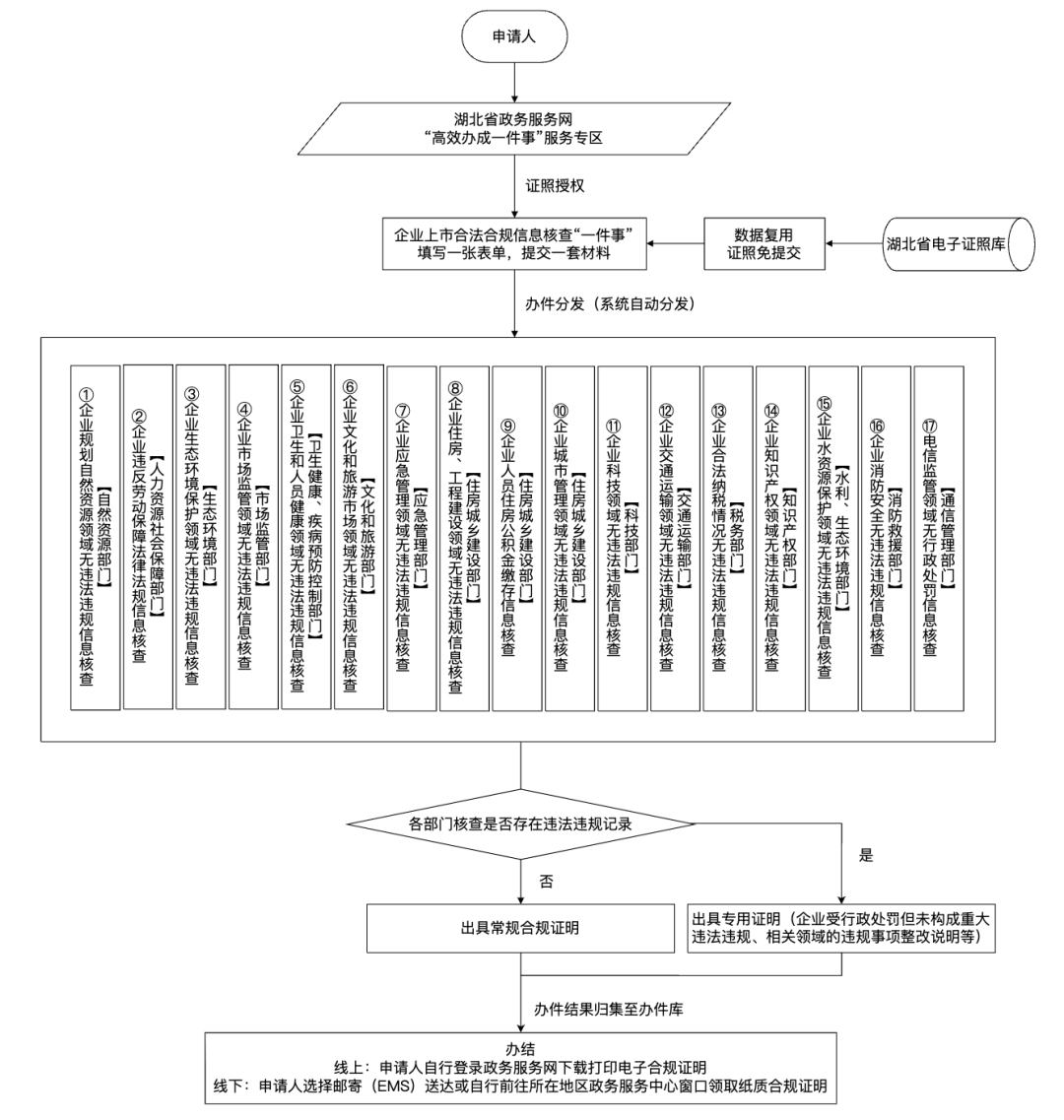 企业上市合法合规信息核查“一件事”办理流程图