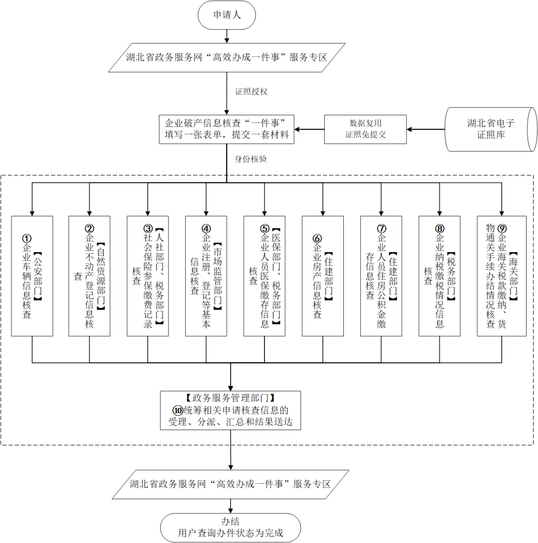 企业破产信息核查“一件事”上线湖北政务服务网啦!9个事项申请人只用填写“一张表单”,提交“一次材料”,享受“一次办结”!