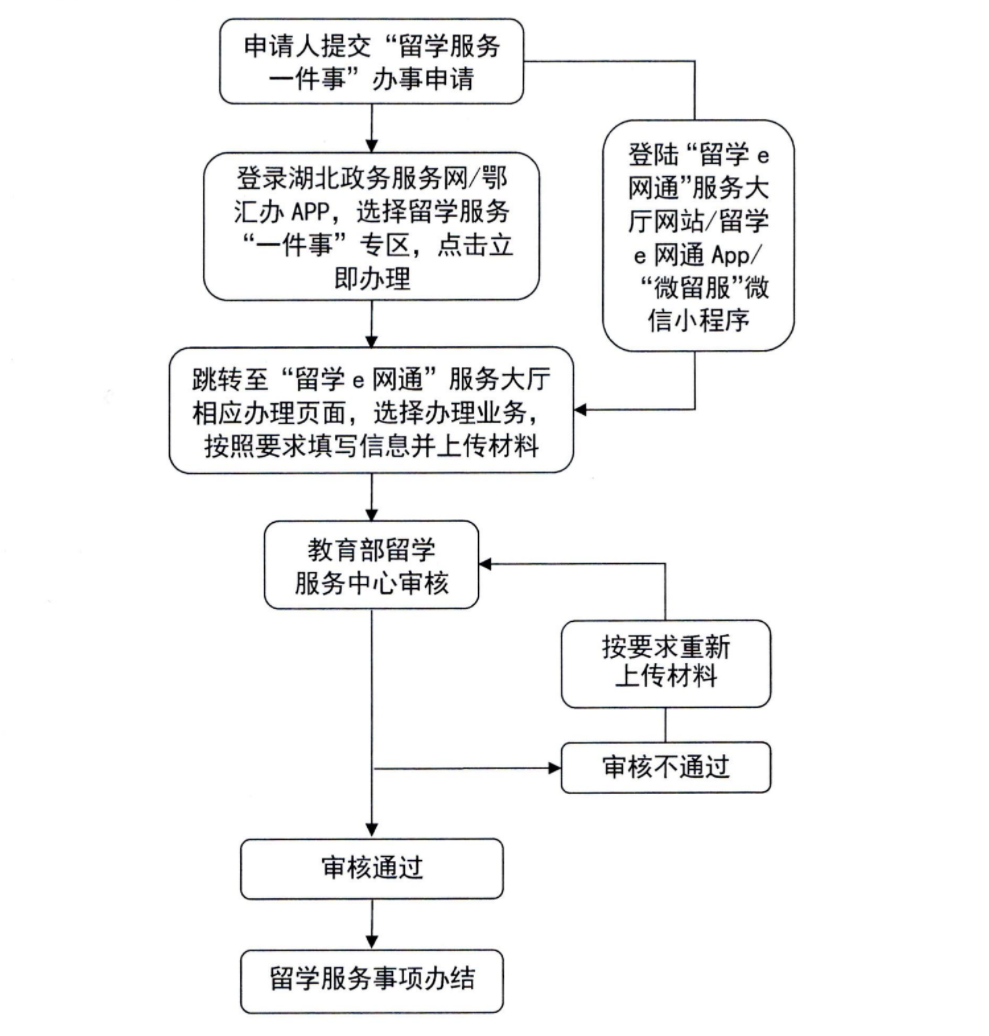登录湖北政务服务网,进入“高效办成一件事”专区,找到留学服务“一件事”,点击“在线办理”选择对应区划进行申报。