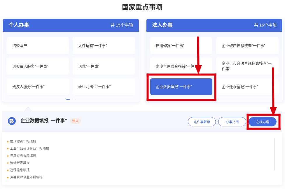 线上渠道:登录湖北政务服务网,进入“高效办成一件事”专区,找到企业数据填报“一件事”,点击“在线办理”选择对应区划进行申报。