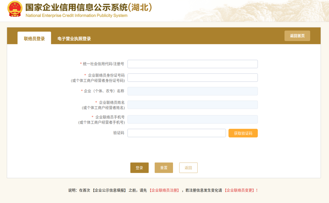 申报后页面跳转至“国家企业信用信息公示系统(湖北)”,申请企业据实填写相关信息即可。