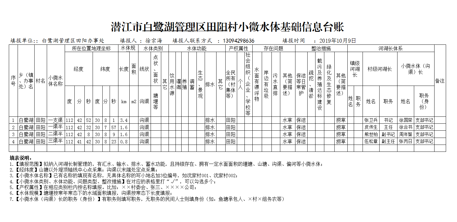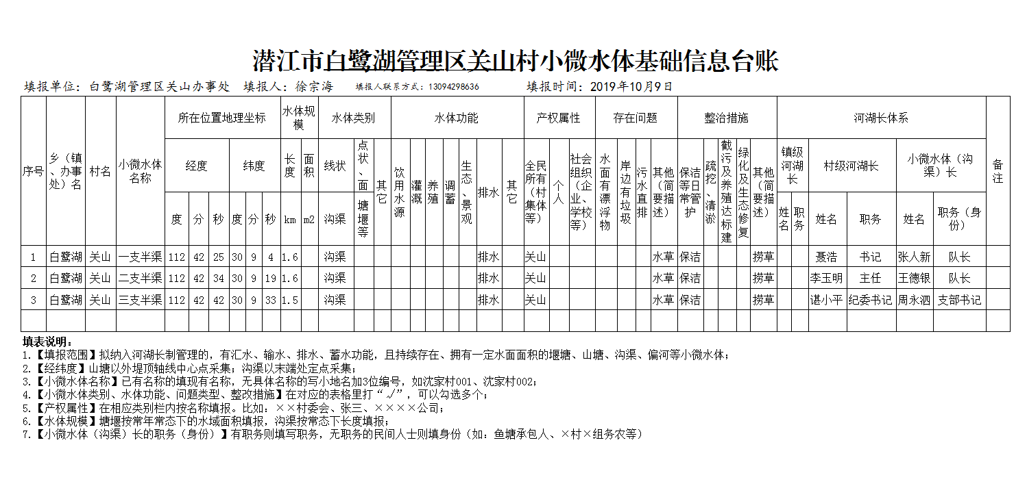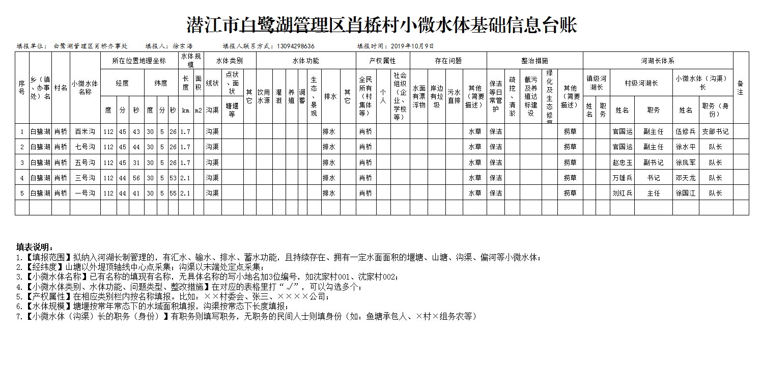 (一)开展摸排建档。以管理区为单位,以办事处(社区)为单元,开展小微水体现状调查,全面掌握小微水体数量、位置、类别、权属等基础信息,并同步建立小微水体问题清单,形成“一办事处(社区)一台账”。管理区统一建立小微水体名录库,定期进行信息更新和名录动态调整,推动小微水体数据信息共享。(责任单位:各办事处(社区)、社会事务办、农业局、水利科;完成时限:2019年9月底前,并将台账及问题清单于2019年10月10日前报管理区河湖长办)