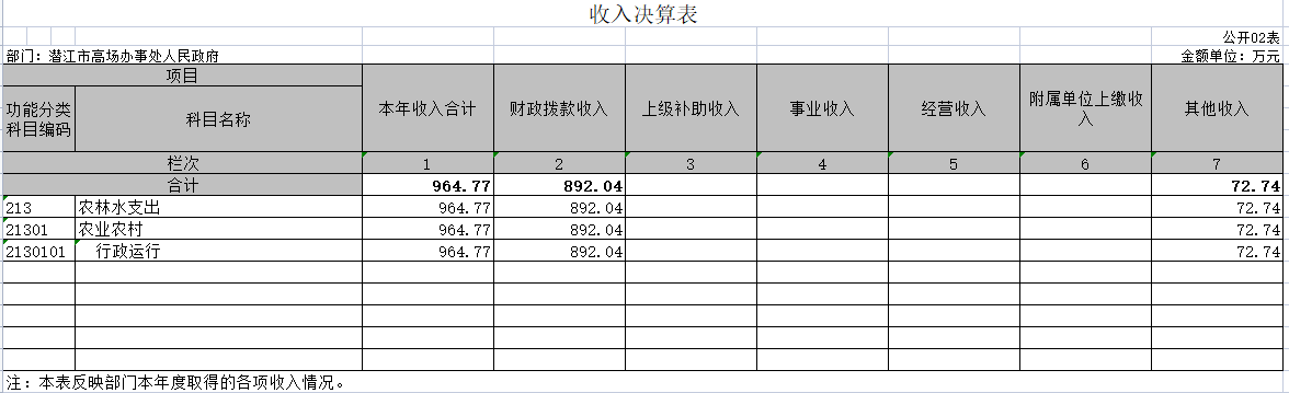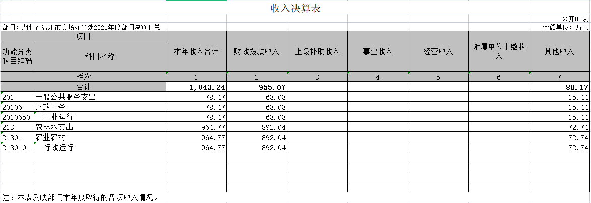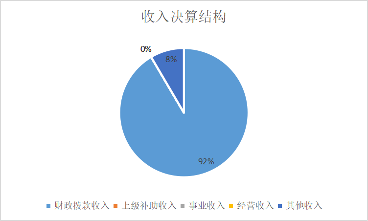 2021年度收入合计1043.24万元。其中:财政拨款收入955.07万元,占本年收入92%;其他收入88.17万元,占本年收入8%;上级补助收入、事业收入、经营收入、附属单位上缴收入等科目均为零。