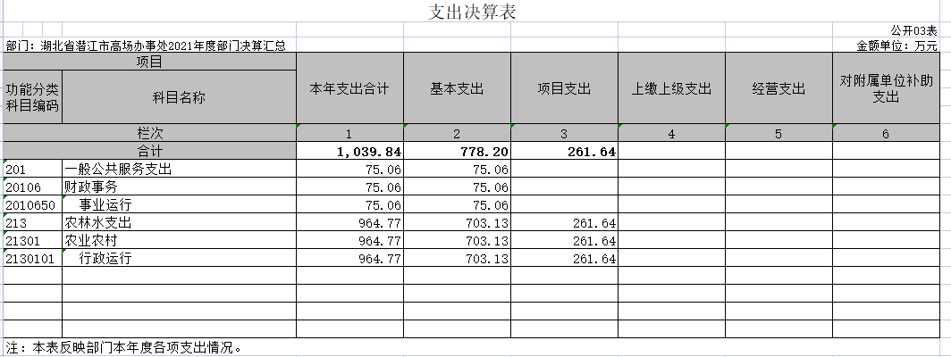 2021年度支出合计1039.84万元。其中:基本支出778.2