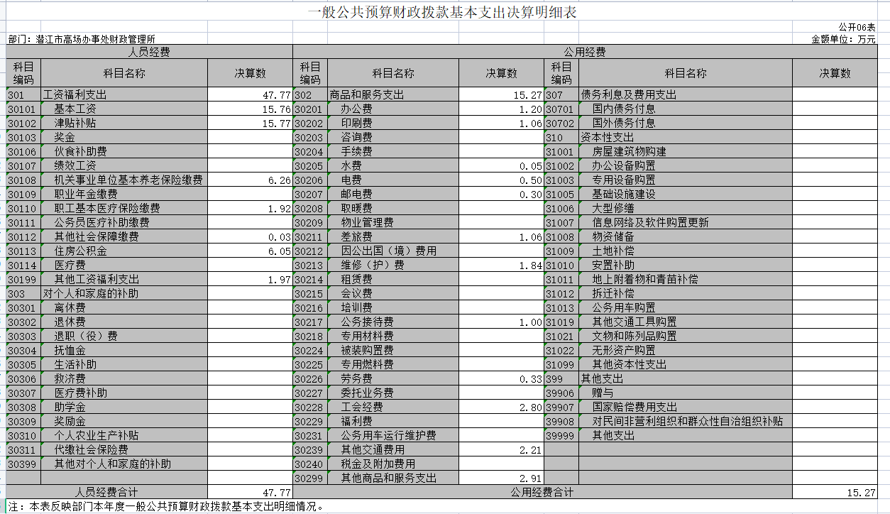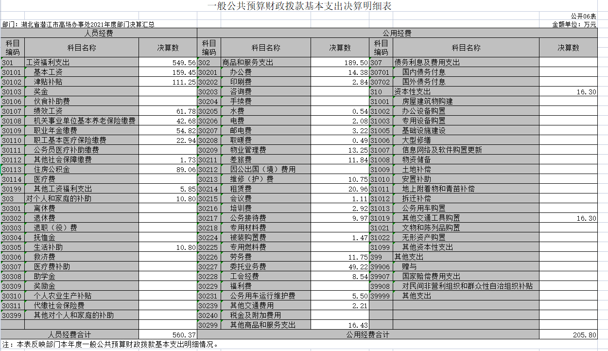 2021年度一般公共预算财政拨款基本支出766.17万元,其中:人员经费560.37万元,主要包括:基本工资、津贴补贴、奖金、伙食补助费、绩效工资、机关事业单位基本养老保险缴费、职业年金缴费、职工基本医疗保险缴费、公务员医疗补助缴费、其他社会保障缴费、住房公积金、医疗费、其他工资福利支出、离休费、退休费、退职(役)费、抚恤金、生活补助、救济费、医疗费补助、助学金、奖励金、个人农业生产补贴、代缴社会保险费、其他对个人和家庭的补助。公用经费205.8万元,主要包括:办公费、印刷费、咨询费、手续费、水费、电费、邮电费、取暖费、物业管理费、差旅费、因公出国(境)费用、维修(护)费、租赁费、会议费、培训费、公务接待费、专用材料费、被装购置费、专用燃料费、劳务费、委托业务费、工会经费、福利费、公务用车运行维护费、其他交通费用、税金及附加费用、其他商品和服务支出、办公设备购置、专用设备购置、信息网络及软件购置更新、公务用车购置、其他资本性支出。