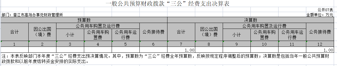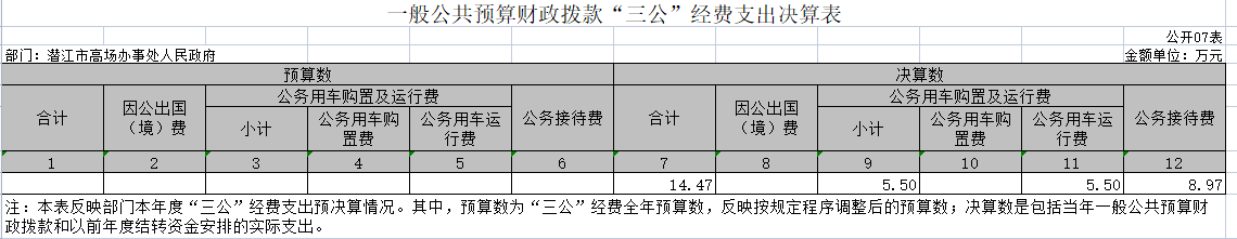 7、一般公共预算财政拨款“三公”经费支出决算表