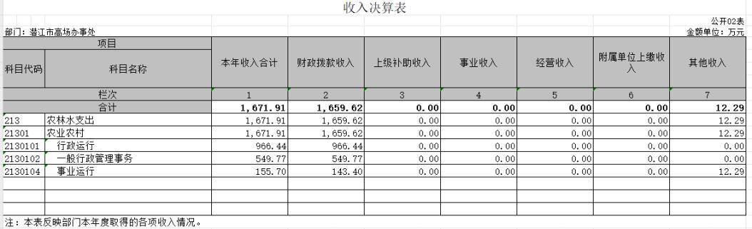 2022年度收入合计1671.91万元,包括政府1516.22万元,财政155.7万元。其中:财政拨款收入1659.62万元,占本年收入99%;其他收入12.29万元,占本年收入1%;上级补助收入、事业收入、经营收入、附属单位上缴收入等科目均为零。