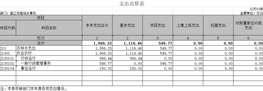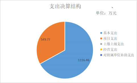 2022年度支出合计1666.23 万元,包括政府1516.22万元,财政155.7万元。其中:基本支出1116.46万元,占本年支出67%;项目支出549.77 万元,占本年支出33%;上缴上级支出、经营支出等科目均为零。